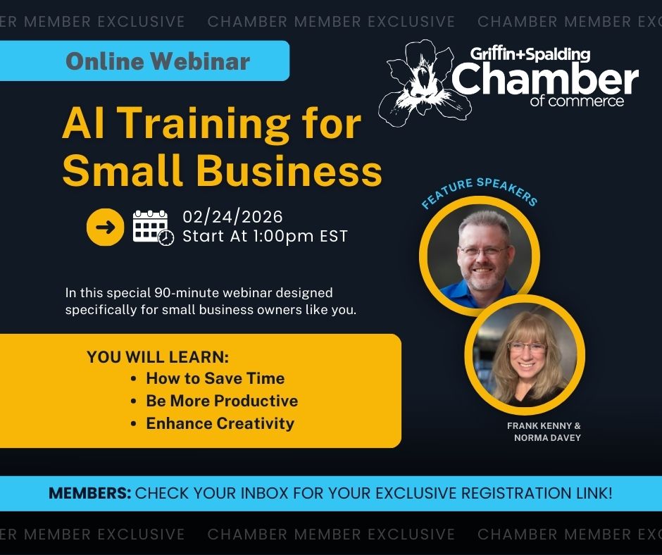 Our chamber has signed up to provide AI for Small Business, a 90-minute online webinar focused on practical, real-world ways small businesses are using AI to save time and work smarter.