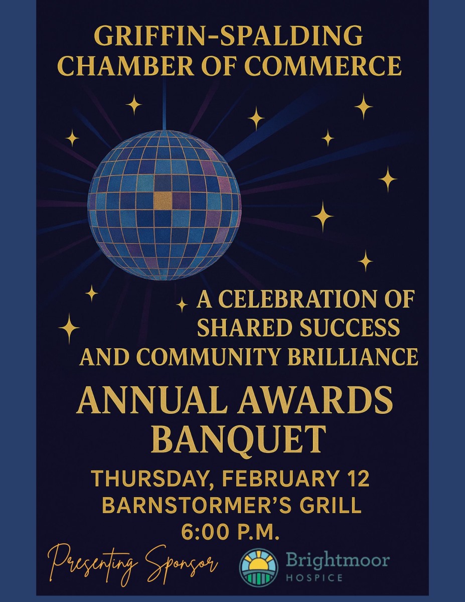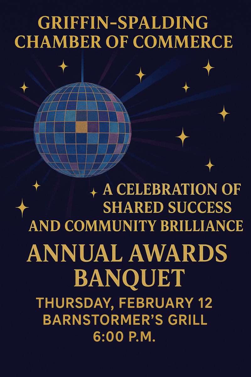 Join the Griffin-Spalding Chamber of Commerce for an evening of celebration, connection, and recognition at our Annual Awards Banquet. This special night honors the businesses, organizations, and individuals whose leadership, innovation, and service help our community shine. Together, we’ll celebrate shared success, reflect on the collective impact of our community, and recognize the many contributions that make Griffin-Spalding a place of opportunity and brilliance for all.